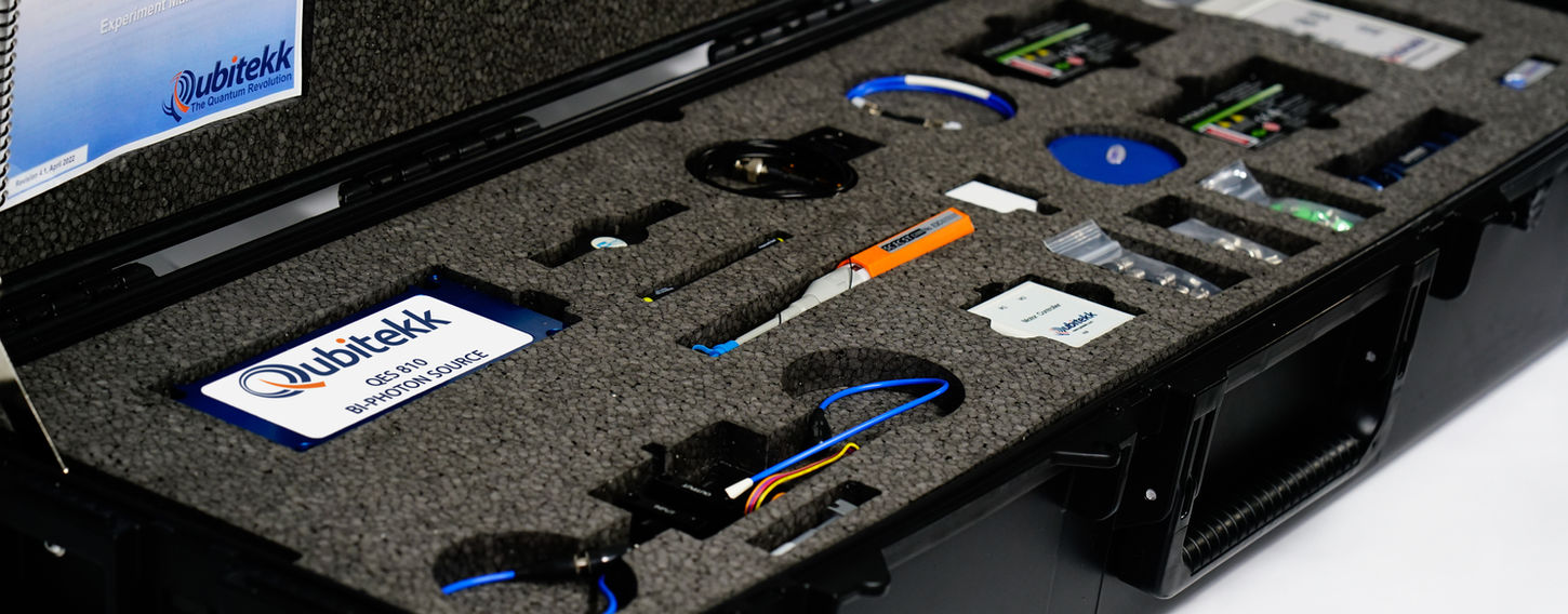 Qubitekk’s Quantum Starter Kit gives you the tools to explore and more deeply understand quantum physics. Suitable for both classroom instruction and R&D, this kit includes all the equipment and instructions needed to perform five fundamental experiments in quantum mechanics. Based on Qubitekk’s zero alignment quantum sources and fiber optic components, these experiments can be set up quickly and each completed within a traditional 2-3 hour lab period. A detailed lab handbook, written at the senior undergraduate level (for physics and engineering), is included to provide a self-guided tour to the amazing phenomena of quantum physics.